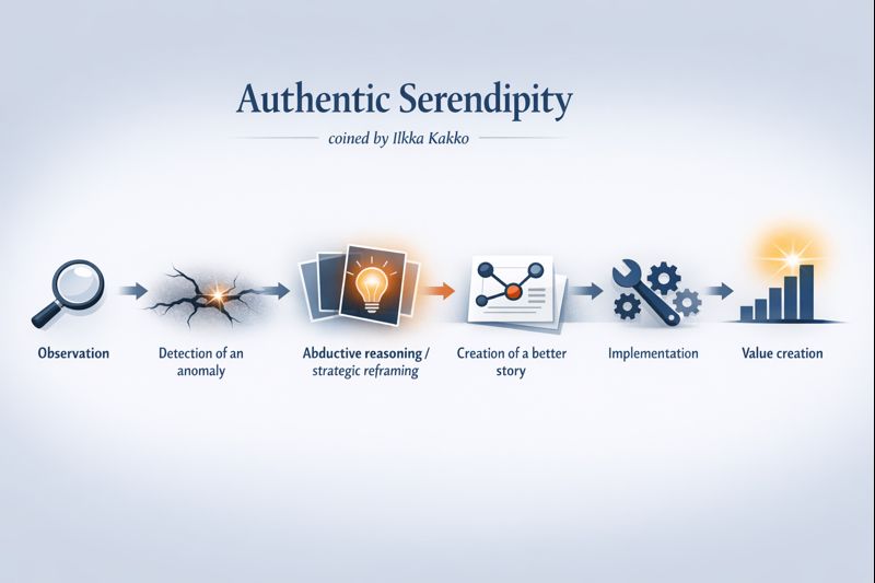 Modern organizations are not uneasy with observation, anomaly detection, abductive reasoning, storytelling, or implementation. These are already core elements of strategy, innovation, and leadership. What organizations are uneasy with is a popularized narrative that frames serendipity as: